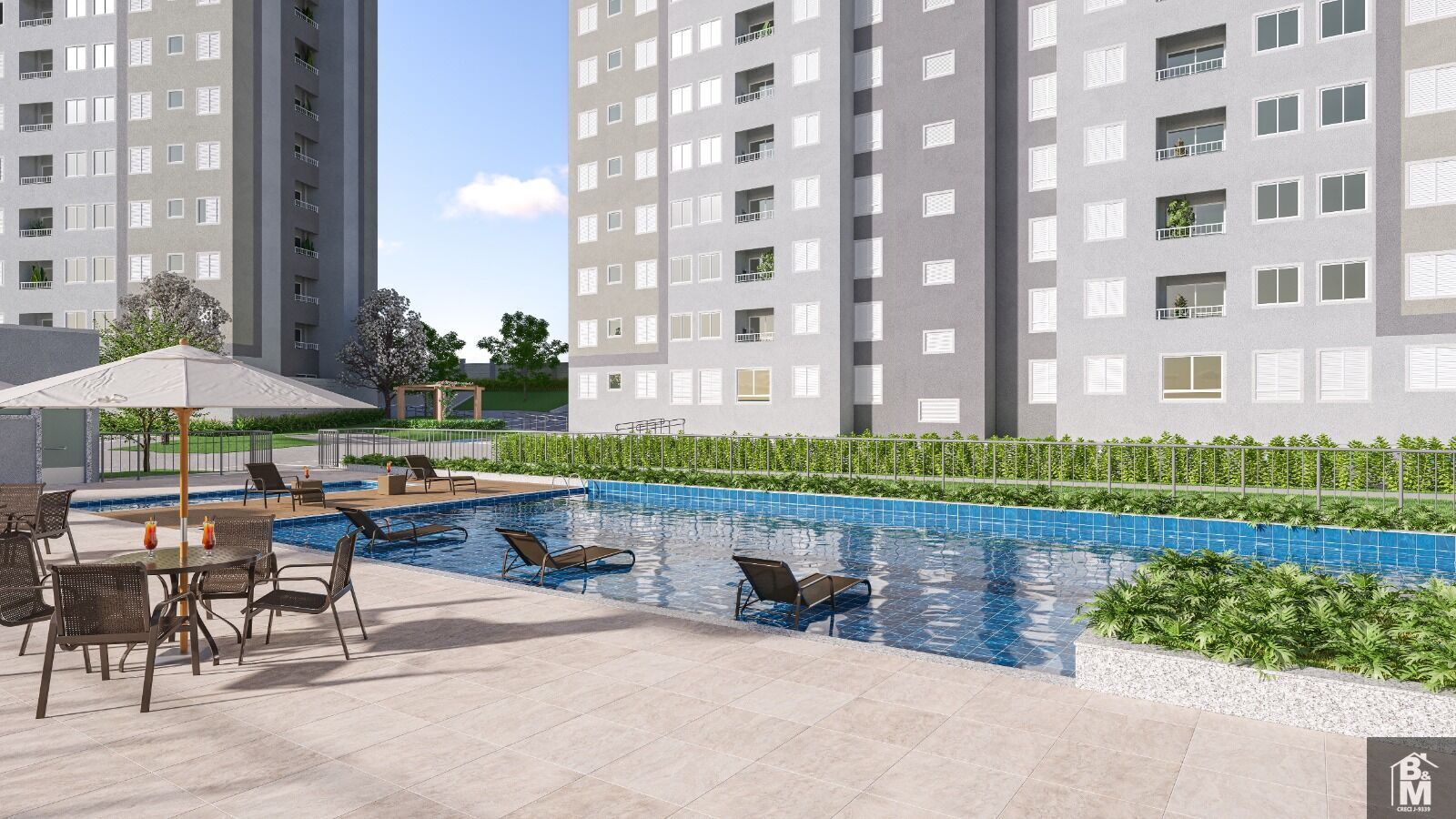 Área de lazer: Espaço gourmet Imagem ilustrativa Salão de festas Bicicletário Playground Piscinas adulto e infantil Espaço piquenique Redário Pet place Gazebo
